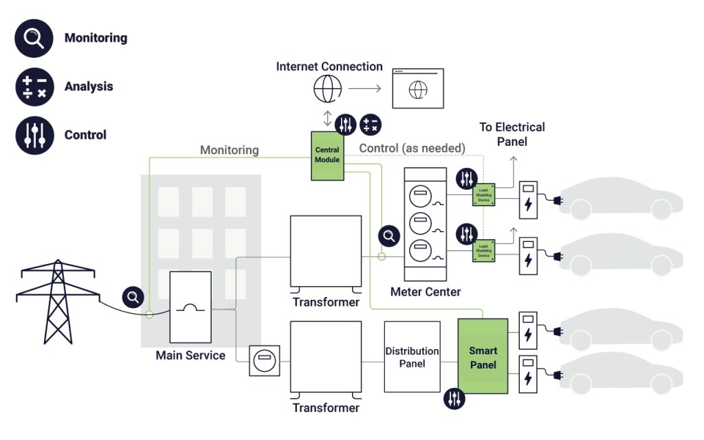 Systems must include current monitoring devices (CT, or current transformers) to track the actual consumption of connected devices. The devices must measure consumption in real time, and must be located inside the building (operating system) to maintain safety features at all times.